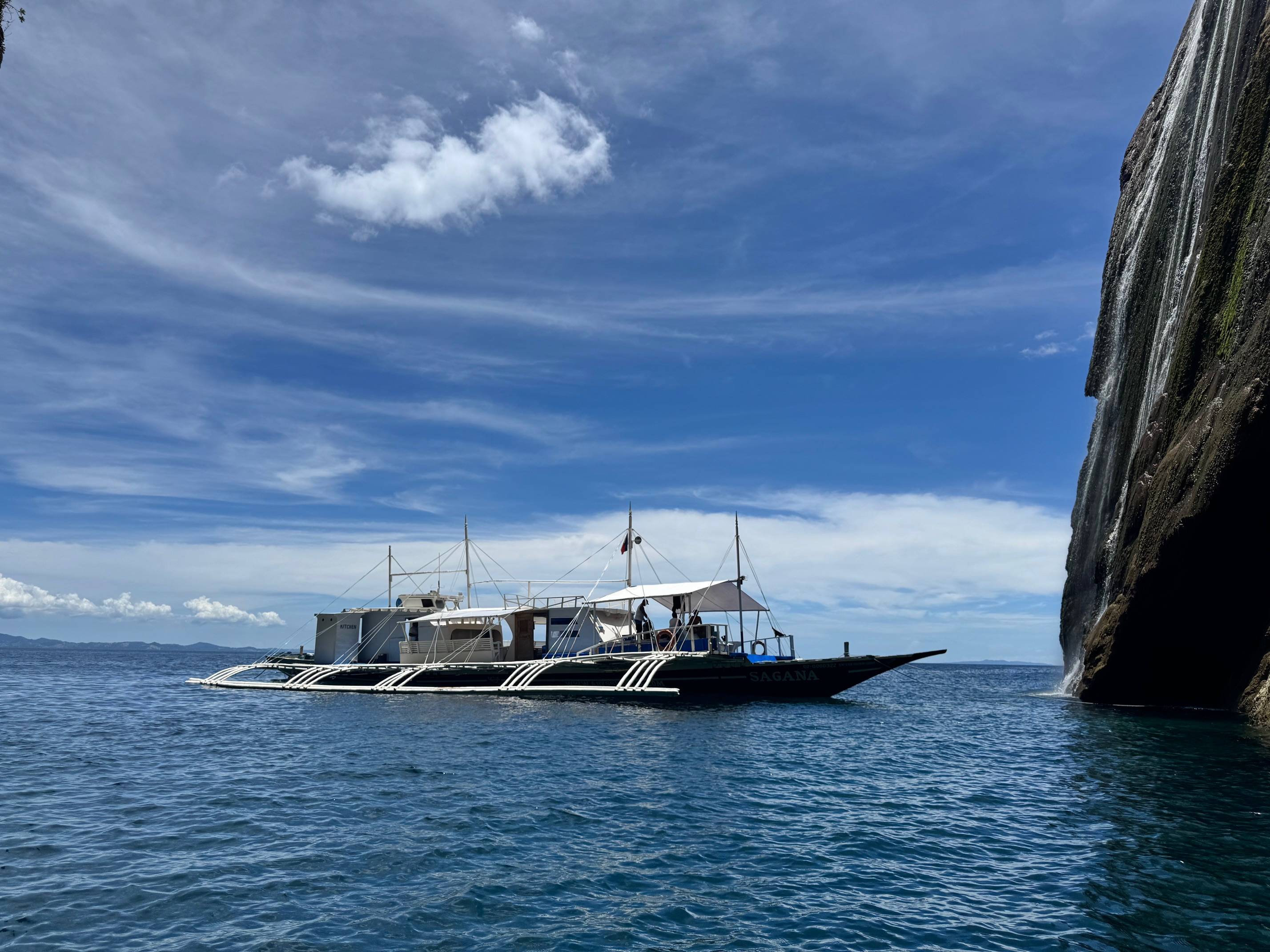 Bateau philippin à balanciers, de construction traditionnelle, notre Bangka est la meilleure alliée des plongeurs pour découvrir l'archipel. Elle est constituée d'une coque effilée en bois, surmontée d'un large pont et d'une cabine spacieuse qui accueille 14 à 18 plongeurs maximum. Le tout est équilibré par 2 balanciers en bambou qui garantissent non seulement une bonne stabilité (les personnes sensibles au mal de mer apprécient...), mais aussi des déplacements rapides (vitesse moyenne : 16 noeuds).