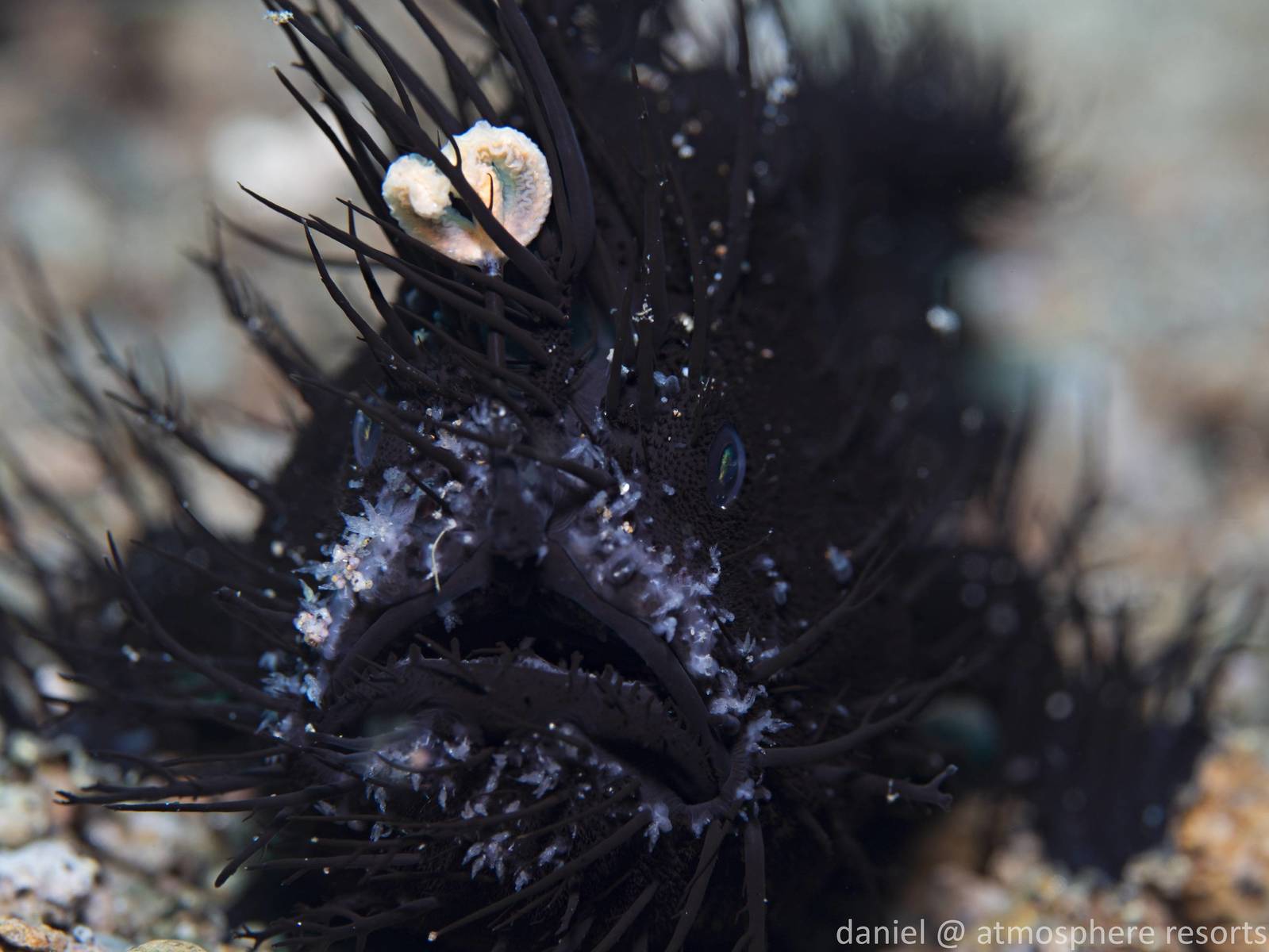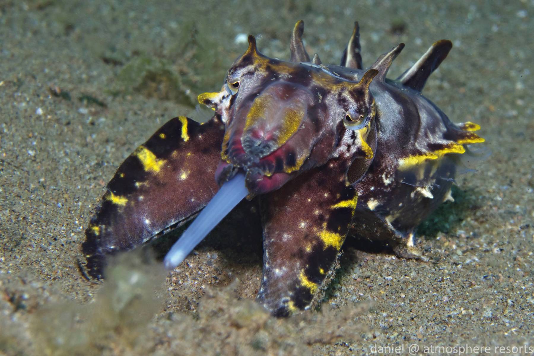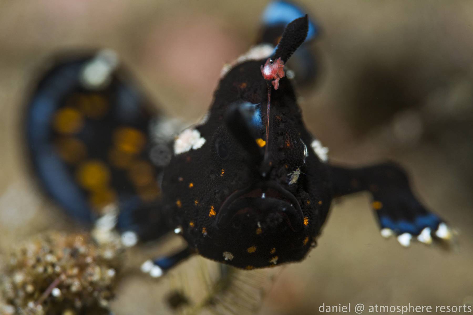 Devant l’hôtel, l'House Reef déroule un jardin corallien foisonnant. Les poissons-clowns y dansent parmi les anémones, les tortues se laissent porter par le courant, et les plongées de nuit transforment le paysage en un théâtre de lumières mouvantes. Mais c’est dans les fonds volcaniques de Dauin que se joue la partition la plus étonnante. Le sable noir, apparemment désert, abrite en réalité une vie insoupçonnée : hippocampes pygmées, frogfish, seiches flamboyantes, crevettes arlequins, nudibranches aux couleurs surréalistes. Ici, chaque centimètre est un monde, chaque plongée une rencontre. Les plongeurs comme les snorkeleurs ont devant eux tout un monde à découvrir.