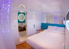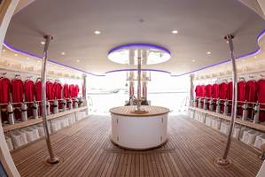 | Equipement | Salle de massages, salon équipé d'une TV plasma et système son, 2 bars à bord vous proposant une large gamme de boissons et cocktails alcoolisés ou non, bière pression, café Nespresso, Spécial - T |