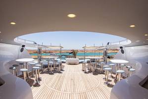 Le dernier pont accueille une agréable terrasse-restaurant avec jacuzzi, idéale pour des dîners sous les étoiles ou des soirées festives autour d’un apéritif dînatoire.